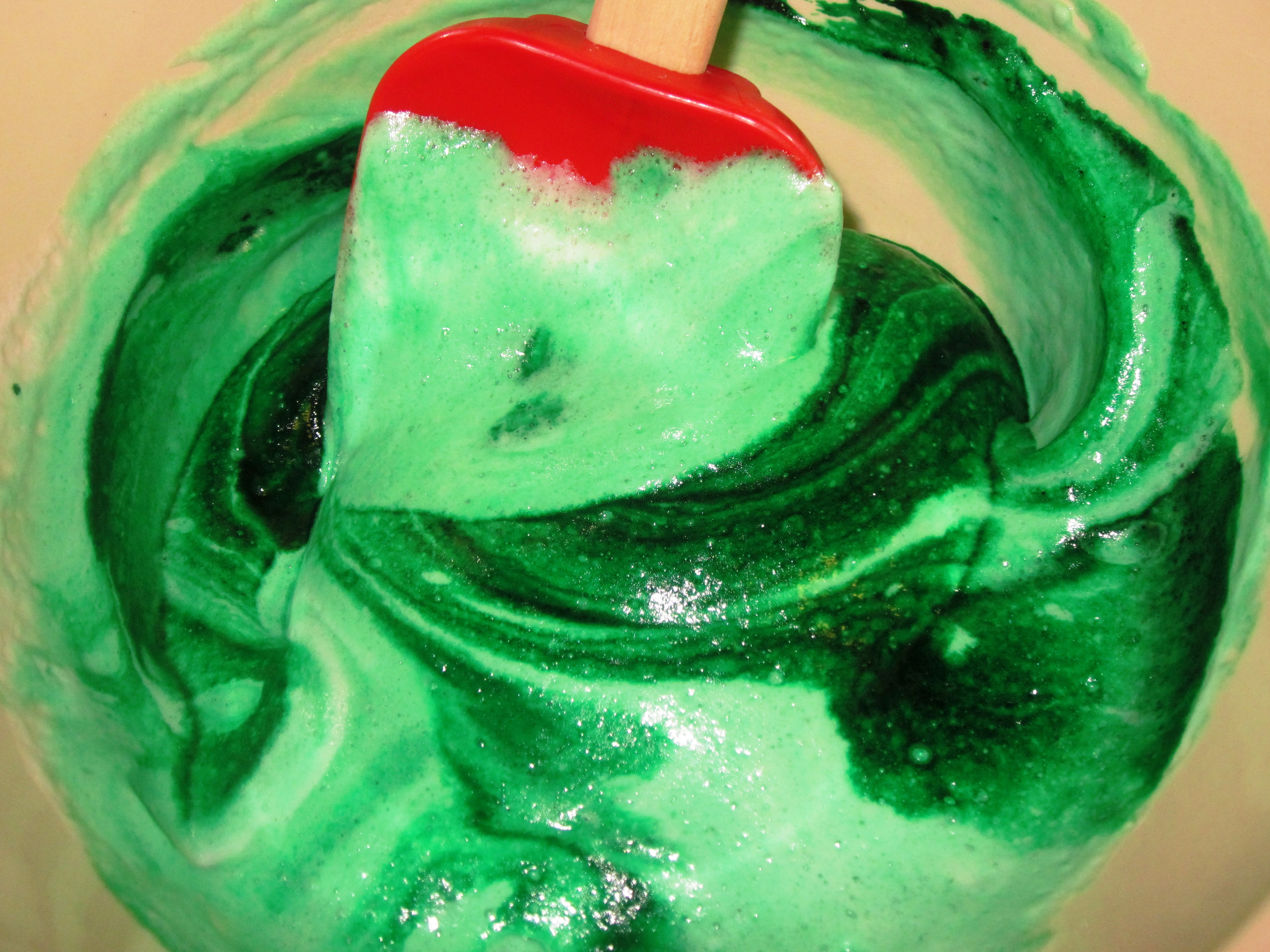 When folding, keep the spatula vertical, moving in a figure-8 motion, with as few strokes as possible.