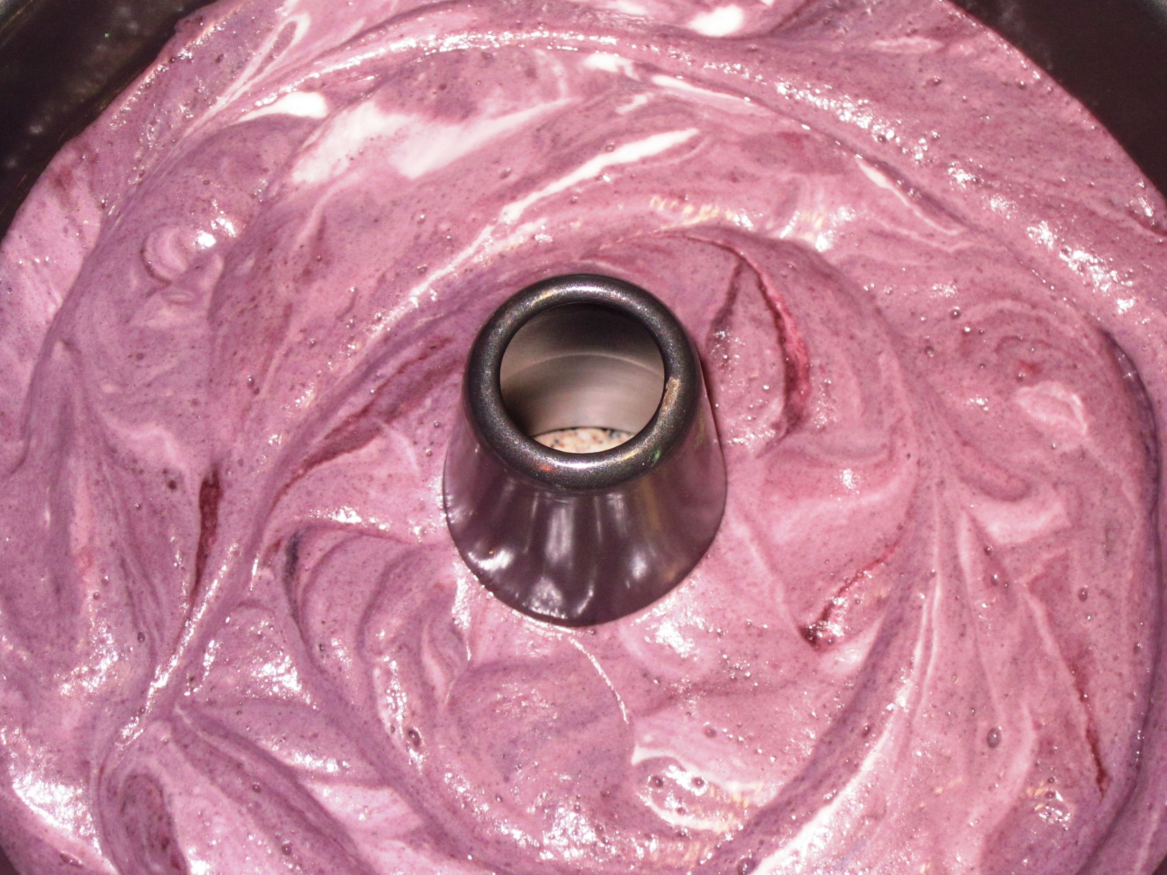 Most cakes contain baking soda and/or powder and will rise in the oven; with angel food, the cake is only as high as the batter. The goal, then, is to keep the batter “big.” The more you beat or stir the mix, the more air you will release, causing the batter to shrink. To fold the batter, make a few figure-8’s while keeping the handle of your spatula vertical. Don’t over-mix.