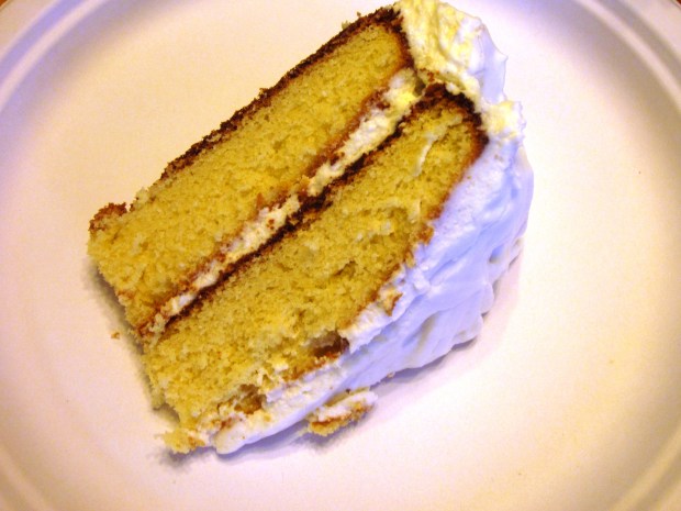 Divide batter between prepared cake pans, smoothing tops. Bake until a toothpick inserted into the center comes out clean, about 30-35 minutes. Cool in pan on racks for 10 minutes. Run a knife around the outer edges and transfer cakes to cooling racks, discarding parchment paper. Let cool completely.